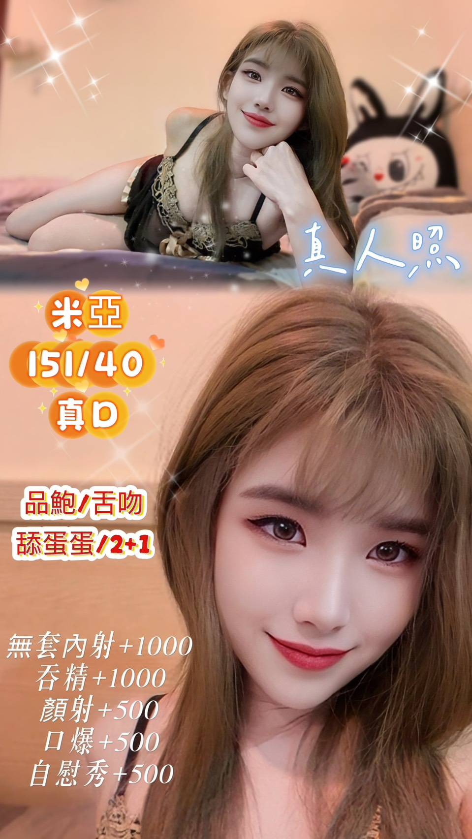 口爆+500 顏射+500 自慰秀+500 無套+1000 2+1