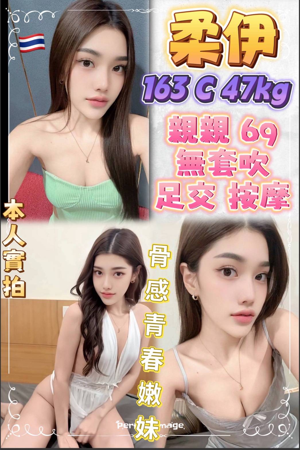 舌吻 殘澡 奶炮 無套吹 共浴 舔蛋 按摩 69 品鮑 深喉 絲襪(自備) 足交