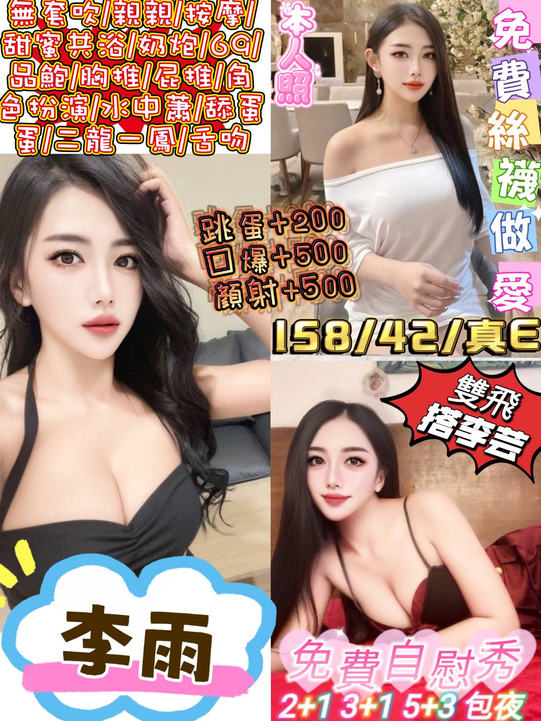 跳蛋+200 口爆+500 顏射+500 2+1S 3+1NS 5+3NS